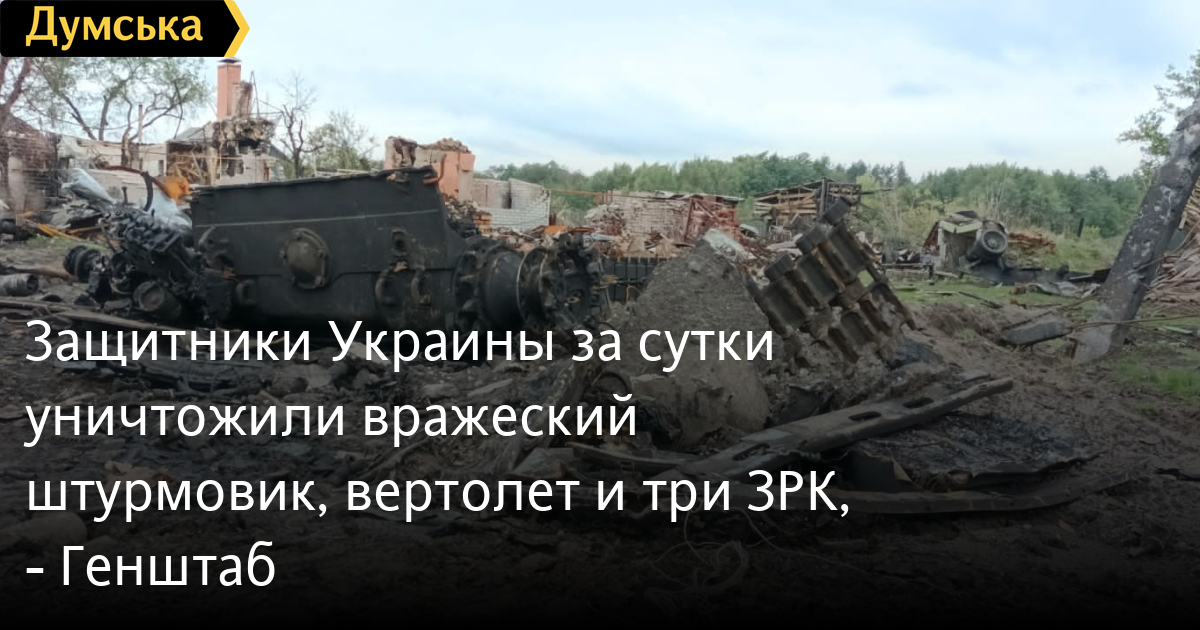 Захисники України за добу знищили ворожий штурмовик, вертоліт і три ЗРК, — ГенштабВорожий штурмовик Су-25, вертоліт Ка-52 та три зенітних ракетних установки знищили Сили оборони України за добу. Про це повідомляє Генштаб Збройних сил України. Також за добу підрозділи Збройних сил України відбили атаки противника в районах населених пунктів Майорськ, Нью-Йорк, Зайцеве, Невельське та Побєда. Авіація Сил оборони завдала 19 ударів. Підтверджено ураження двох опорних пунктів, чотирнадцяти місць зосередження озброєння та військової техніки, а також трьох зенітних ракетних комплексів противника. Ракетні війська і артилерія за добу уразили чотири пункти управління, сімнадцять районів зосередження живої сили, озброєння та військової техніки, два склади з боєприпасами та матеріально-технічними засобами, два об’єкти протиповітряної оборони, а також десять інших важливих об’єктів противника. СМЕРТЬ РОСІЙСЬКИМ ОКУПАНТАМ! Помітили помилку? Виділяйте слова з помилкою та натискайте control-enter |