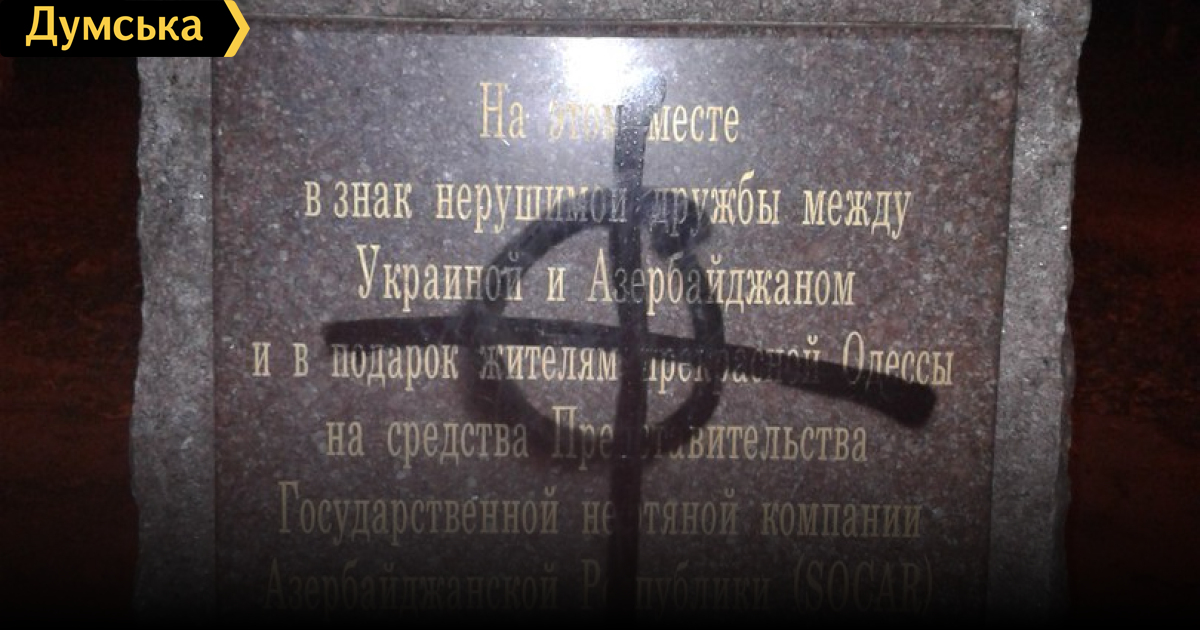 Закладной камень одесского парка «Азербайджан», который с 2013 года обещает разбить на 4-й станции Фонтана азербайджанская госкомпания SOCAR, подвергся нападению неизвестных вандалов.