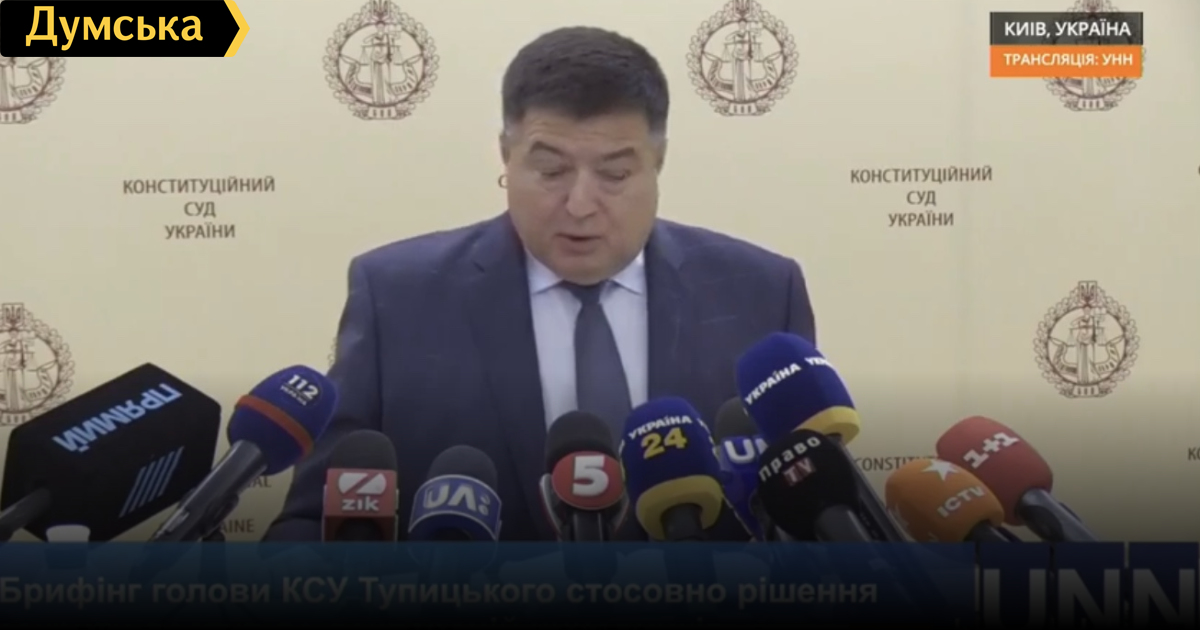 Законопроект Зеленского о роспуске Конституционного суда имеет признаки конституционного переворота, — председатель КСУЗаконопроект президента Владимира Зеленского, предусматривающий роспуск всего состава Конституционного Суда Украины, имеет признаки конституционного переворота. Об этом в ходе брифинга заявил председатель КСУ Александр Тупицкий. «Что должно произойти в парламенте во вторник? Законом или постановлением отменить решение Конституционного суда? Чего тогда не указом президента? Зачем привлекать парламент, если один человек взял на себя ответственность», — заявил Тупицкий, комментируя законопроект Зеленского. Председатель суда заявил, что подобные решения принимают лишь в недоразвитых странах. Напомним, на этой неделе КСУ признал неконституционной уголовную ответственность за недостоверное декларирование. Также суд заблокировал работу НАПК и системы электронного декларирования. Решение КСУ принято по представлению депутатов ОПЗЖ и «За майбутне». Вскоре в СНБО заявили, что действия Конституционного суда говорят о наличии плана против Украины. В Евросоюзе отметили, что подобные шаги могут стать причиной для отмены безвизового статуса для Украины. Ночью президент Зеленский подал законопроект о роспуске Конституционного суда Украины, который уже раскритиковала оппозиция и назвала его неконституционным. Ранее в Конституционном суде прокомментировали свое скандальное решение. Согласно официальному заявлению, декларирование доходов лиц, которые осуществляют публичную власть, является беспрекословным требованием в любой современной демократической стране. Вместе с тем, проанализировав состав преступления, предусмотренного ст. 366-1 УК Украины, в суде пришли к выводу, что однозначно определить круг возможных субъектов преступления — невозможно. Это означает, что к ответственности за умышленное непредоставление декларации можно привлечь и тех, кто фактически не должен был и сознательно не подавал декларацию. Все вышеперечисленное в суде назвали нарушением принципа верховенства права, предусмотренного ст. 8 Конституции Украины. «Из приведенных позиций Конституционного Суда Украины усматривается, что законодателем должно быть введено такое антикоррупционное законодательное регулирование, которое обеспечит соблюдение принципа верховенства права, составляющие которого: юридическая определенность, предсказуемость, пропорциональность и соразмерность», — заявили в КСУ.