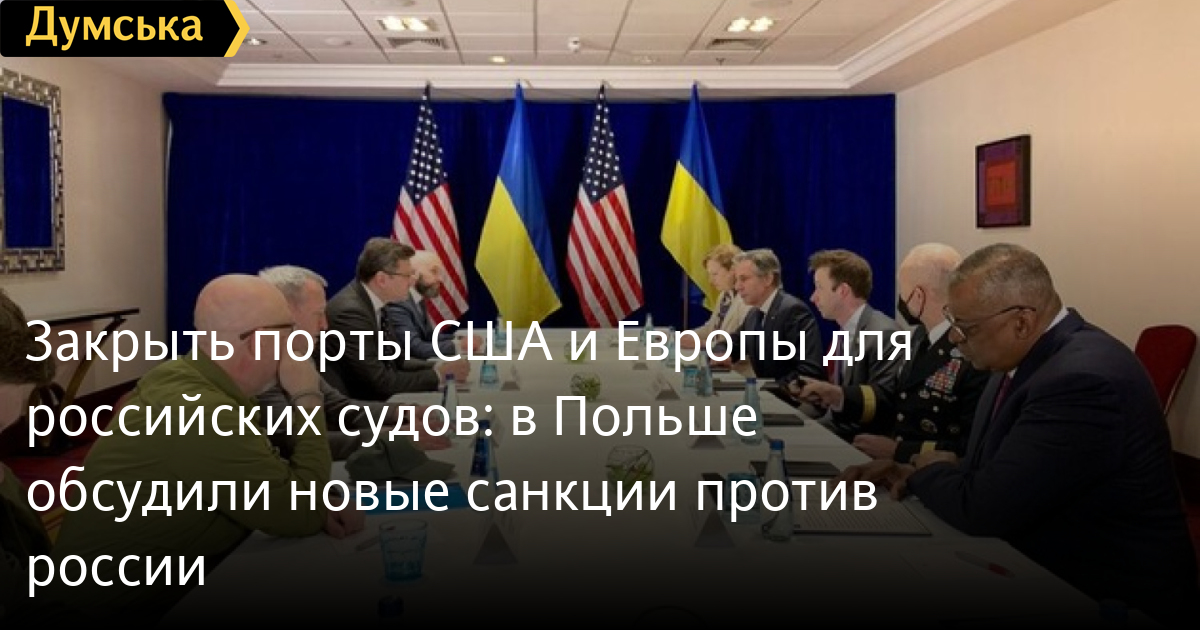Закрыть порты США и Европы для российских судов: в Польше обсудили новые санкции против россииСегодня в Варшаве в формате «2+2» состоялось обсуждение новых санкций против россии, в котором принимали участие министр иностранных дел Дмитрий Кулеба, министр обороны Украины Алексей Резников, министр обороны США Ллойд Остин и госсекретарь Энтони Блинкен. Вскоре к обсуждению подключился и президент США Джо Байден. Как сообщил в Фейсбук Дмитрий Кулеба, на встрече обсуждалось закрытие американских и европейских портов для российских кораблей и грузов, а также внедрение индивидуальных санкций против всех политиков рф. Кроме того, было решено «взбодрить» европейские страны, которые под разными предлогами отказываются участвовать в изоляции России. Министр иностранных дел Украины назвал новые меры «санкционным котлом». Кроме блокировки российских кораблей в мировых портах, обсудили механизм, при котором невозможно обойти ограничения через другие государства. Речь шла также об оружии. О поддержке Штатов в этом направлении. Во время встречи президент Байден в очередной раз восхитился украинцами. «Соединенные штаты непоколебимо будут с Украиной во всем до нашей победы. Ничто не заставит Штаты отвлечься от Украины или ослабить поддержку. Наоборот, поддержка будет только расти», - отметил Кулеба. СМЕРТЬ РОСІЙСЬКИМ ОКУПАНТАМ! Помітили помилку? Виділяйте слова з помилкою та натискайте control-enter |