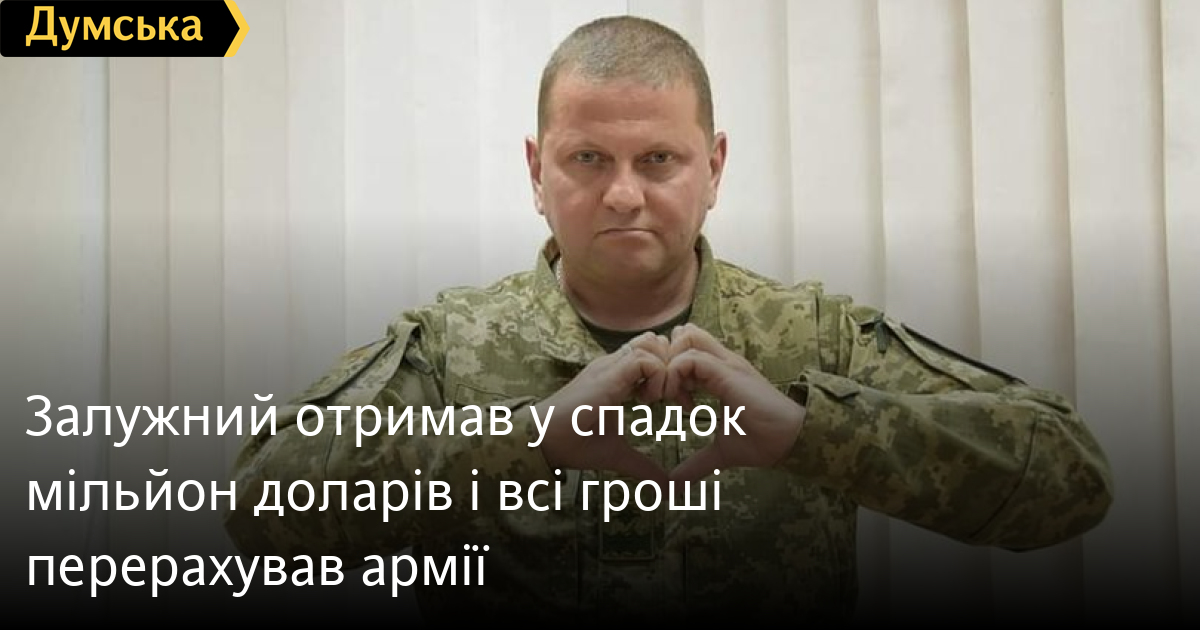 Головнокомандувач Збройних сил України генерал Валерій Залужний перерахував армії мільйон доларів, який наприкінці минулого року отримав у спадок.