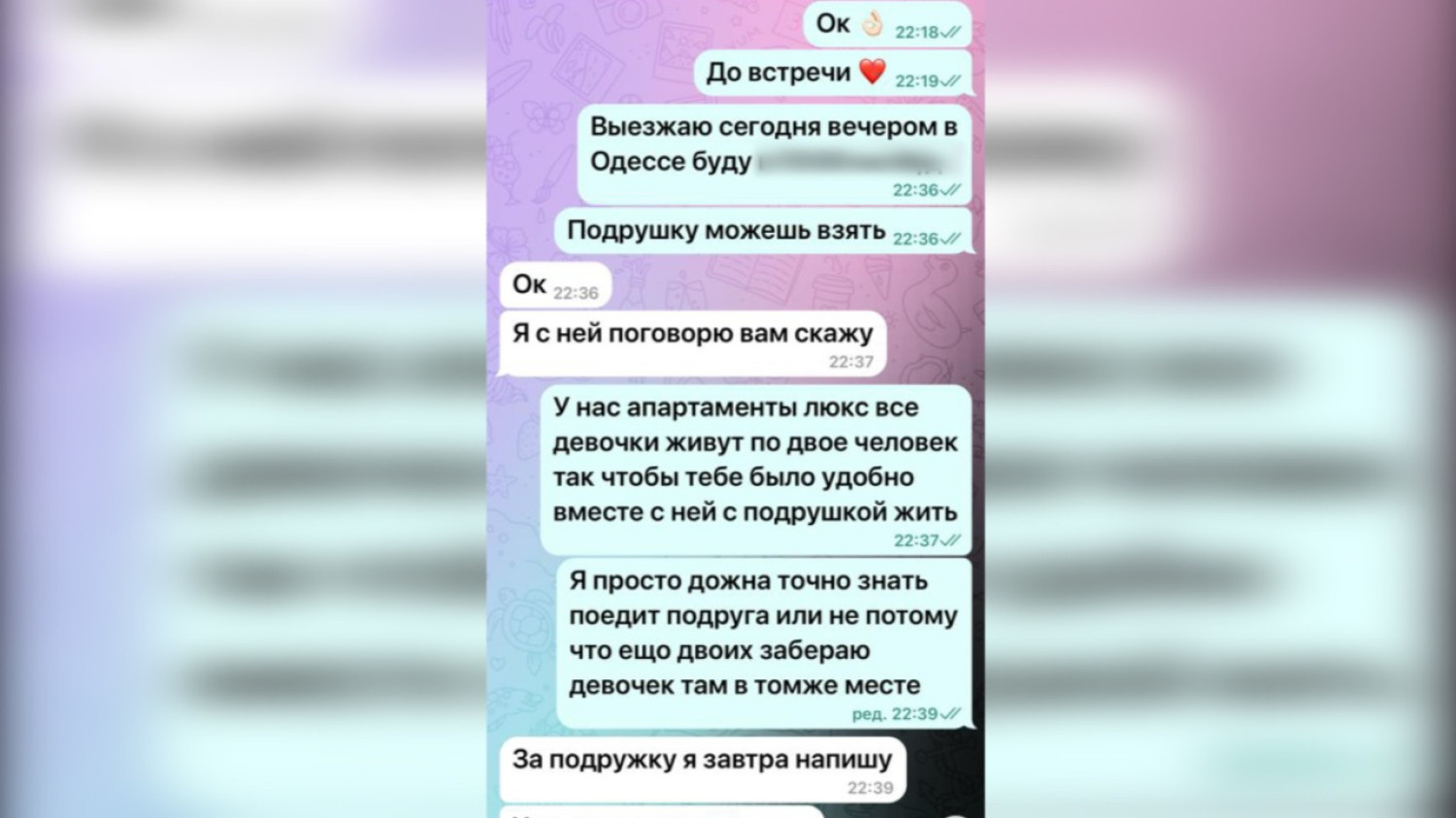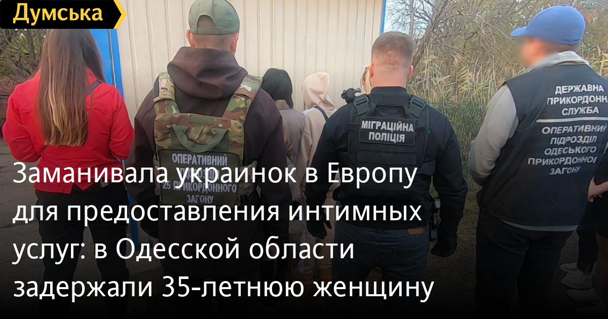Заманивала украинок в Европу для предоставления интимных услуг: в Одесской области задержали 35-летнюю женщину35-летнюю жительницу Коломыи, которая в условиях военного положения вербовала украинок для предоставления интимных услуг в Европе, задержали одесские правоохранители. Как сообщили в пресс-службе одесской полиции, правонарушительницу задержали на контрольно-пропускном пункте «Маяки», когда та пыталась переправить транзитом в Болгарию четырех завербованных девушек. Правоохранители установили, что в течение двух последних месяцев фигурантка переправляла молодых женщин через границу с целью их дальнейшей сексуальной эксплуатации. Злоумышленница подыскивала девушек, оказавшихся в затруднительном материальном положении, и обещала им трудоустройство за границей с высоким уровнем заработка. Полицейские изъяли у жительницы Ивано-Франковской области мобильный телефон с перепиской с завербованными девушками. Следователи сообщили ей о подозрении в совершении правонарушения, предусмотренного ч. 2 ст. 149 Уголовного кодекса. Санкция статьи предусматривает наказание в виде лишения свободы сроком от пяти до 12 лет с конфискацией имущества или без таковой. Полицейские поместили подозреваемую в изолятор временного содержания и добиваются в суде избрания ей меры пресечения в виде содержания под стражей. Заметили ошибку? Выделяйте слова с ошибкой и нажимайте control-enter Новости по этой теме: 29 июля 2025: В Усатово Одесской области произошла перестрелка: полиция работает на месте (видео, обновлено) 28 июля 2025: Пьяный на «Ягуаре» или гипертоник? Уволенный топ-чиновник одесской полиции хочет вернуться на службу 19 июня 2025: Девочку, которую искали сотни одесситов, нашли убитой: полиция работает с мужчиной, вероятно, причастным к гибели 27 мая 2025: Увели гектар у университета: на Одесчине осудили земельных аферистов, но без посадки и Хвоста |
