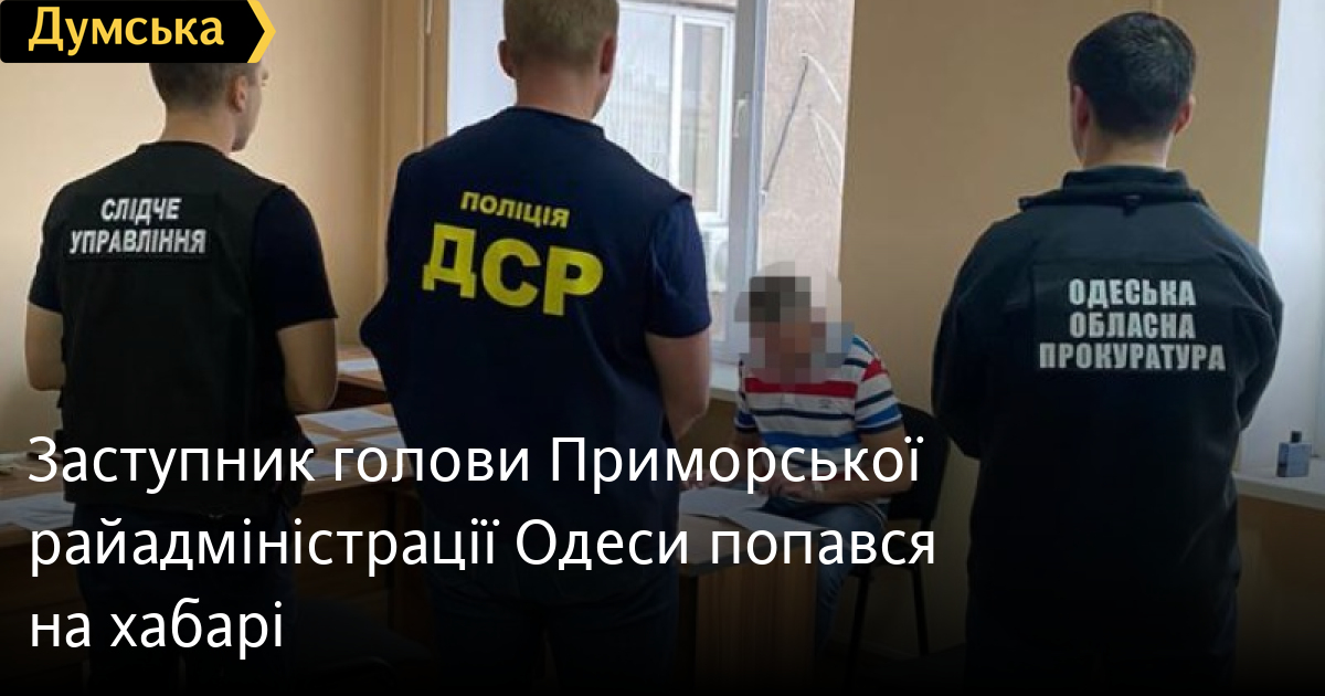 Заступник голови Приморської райадміністрації Одеси попався на хабаріПершого заступника керівника однієї з райадміністрацій Одеси затримали під час одержання хабара у розмірі двох тисяч доларів. Як повідомили у поліції Одеської області, посадовець вимагав 2500 доларів за допомогу у вирішенні питання щодо приватизації квартири комунальної форми власності. Поліцейські задокументували отримання фігурантом двох тисяч доларів завдатку. У прокуратурі області уточнили, що за ці гроші підозрюваний гарантував позитивне вирішення питання приватизації квартири в центрі Одеси з усіма необхідними погодженнями. Також він обіцяв якнайшвидше отримання свідоцтва про приватизацію житла, техпаспорту та держреєстрації. 500 доларів, що залишилися, він мав отримати після позитивного вирішення питання. У разі відмови платити посадовець обіцяв повернути квартиру в комунальну власність. Заступнику голови райадміністрації повідомили про підозру у скоєнні злочину, передбаченого ч.3 ст. 369-2 Кримінального кодексу України. Вирішується питання про обрання йому запобіжного заходу у вигляді тримання під вартою та усунення з посади. За інформацією «Думської», йдеться про заступника голови Приморської райадміністрації Сергія Буймовича. Помітили помилку? Виділяйте слова з помилкою та натискайте control-enter Новини по цій темі: 15 липня 2025: Вимагала 400 євро за підробку документів для пенсії: в Одеській області чиновниця попалася на хабарі (фото, відео) 27 червня 2025: За 40 тис. грн хотів купити секретні розробки: в Одесі затримали співробітника приватної фірми 6 червня 2025: Вимагав три тисячі доларів за довідку про інвалідність: в Одесі затримали головлікаря лікарні (фото) 8 травня 2025: Обіцяли оформити програмістом в комунальне підприємство: в Одеській області викрили схему ухилення від армії |