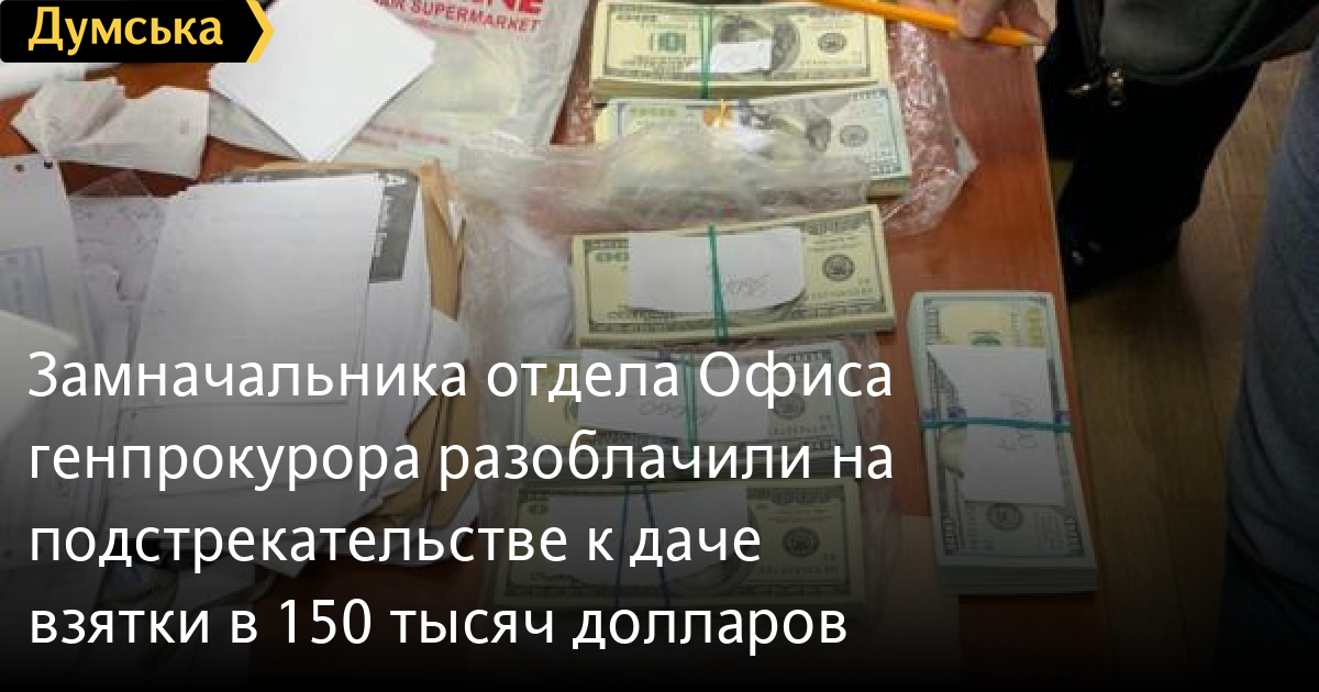 Замначальника отдела Офиса генпрокурора разоблачили на подстрекательстве к даче взятки в 150 тысяч долларовЗаместителя начальника одного из отделов Офиса генерального прокурора разоблачили на подстрекательстве к даче 150 тысяч долларов взятки и мошенничестве. Как сообщила пресс-служба Национального антикоррупционного бюро Украины (НАБУ), к уголовной ответственности также привлекли физическое лицо-посредника. Следствие установило, что должностное лицо ОГП предложило бизнесмену за вознаграждение решить его проблемы, связанные с уголовным преследованием, которые осуществляли следователи Главного управления ГФС при процессуальном руководстве прокуроров. В частности, добиться закрытия уголовного производства и вернуть предпринимателю изъятое в ходе обысков имущество (компьютерная техника, автомобили Mercedes-Benz S400 CDI, Porshe Macan GTS, Bentley Continental GT, Land Rover Range Rover). За свои услуги правоохранитель предложил бизнесмену заплатить ему 100 тысяч долларов якобы для дальнейшей передачи руководству Офиса генпрокурора. В дальнейшем чиновник увеличил сумму неправомерной выгоды до 150 тысяч долларов. Для реализации своего плана замначальника отдела Офиса генпрокурора привлек посредника. «В этот же день во время проведения обысков по месту работы подозреваемых в рамках расследования указанных фактов детективы НАБУ изъяли большие объемы наличных денег. Статус этих средств проверяется. НАБУ и САП проводят необходимые следственные действия, направленные на установление других возможных участников преступления», — заявили в НАБУ. СМЕРТЬ РОСІЙСЬКИМ ОКУПАНТАМ! Помітили помилку? Виділяйте слова з помилкою та натискайте control-enter Новини по цій темі: 15 липня 2025: Вимагала 400 євро за підробку документів для пенсії: в Одеській області чиновниця попалася на хабарі (фото, відео) 27 червня 2025: За 40 тис. грн хотів купити секретні розробки: в Одесі затримали співробітника приватної фірми 6 червня 2025: Вимагав три тисячі доларів за довідку про інвалідність: в Одесі затримали головлікаря лікарні (фото) 8 травня 2025: Обіцяли оформити програмістом в комунальне підприємство: в Одеській області викрили схему ухилення від армії |
