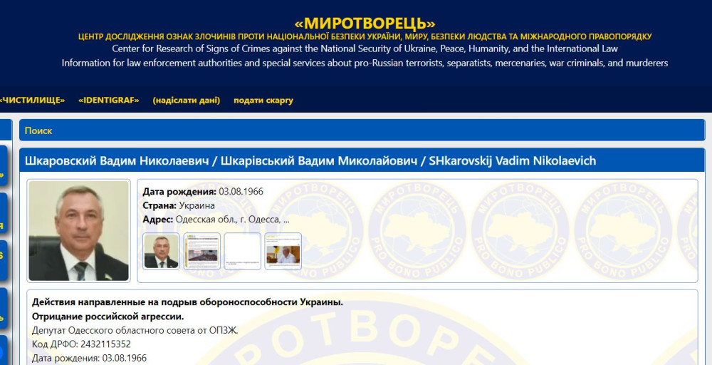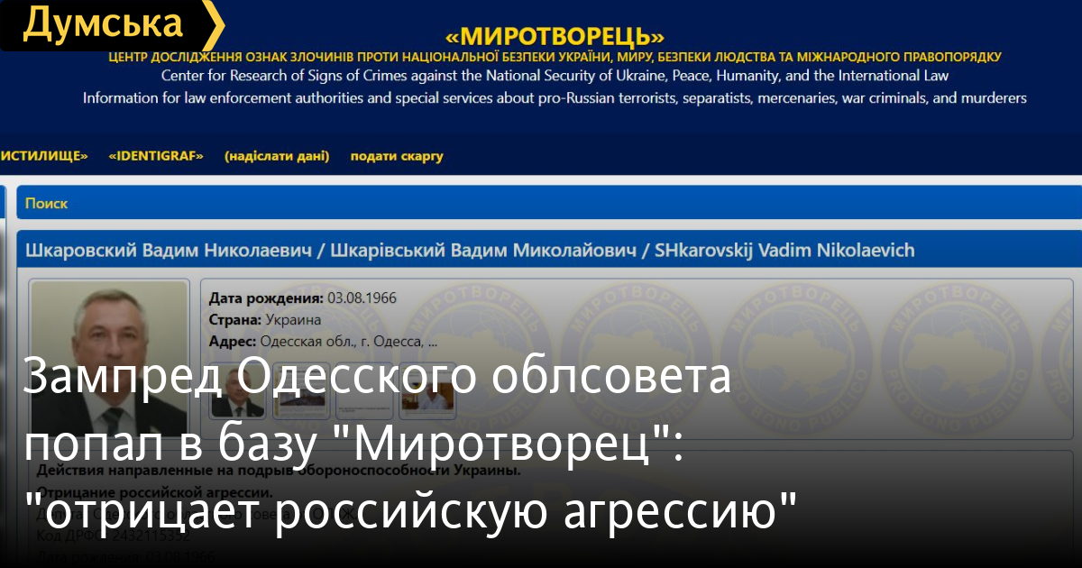 Заместитель председателя Одесского областного совета Вадим Шкаровской оказался в базе данных центра «Миротворец», который занимается исследованием преступлений против основ национальной безопасности Украины.