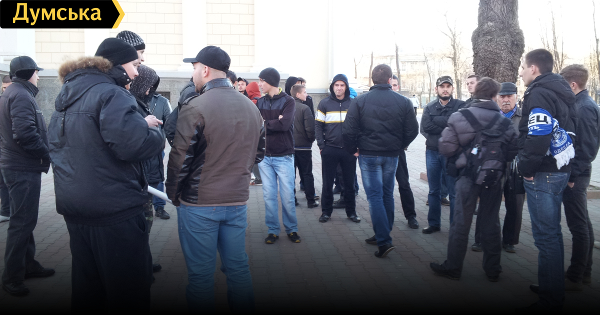 «О проведении своих акций также заявили организации «Южный оперативный казацкий округ» и «ЗУБР». Поскольку заявки подали организации с разной идеологией, суд посчитал, что могут возникнуть столкновения. Я прошу у вас извинения за это позорное решение. Расходитесь по своим делам», — сказал он. Организатор акции также возмутился тем, что «Думская» называет происходящее «маршем нацистов» и сообщил, что протестующие выступают против нарушения закона, а именно нелегальной миграции, и позиционируют себя как «националисты». Отметим, что активисты действительно не взяли с собой никакой символики, кроме нескольких шарфов с логотипом «Черноморца». При этом протестующие не разошлись, как предложил организатор, а всей толпой направились к стадиону в парка Шевченко, где 18:30 «моряки» встретятся с полтавской «Ворсклой». Во время стихийного шествия на улице Греческой мимо «националистов» прошел темнокожий парень, на что те отреагировали возгласом «У-у-у!», имитируя звук, который издает обезьяна.