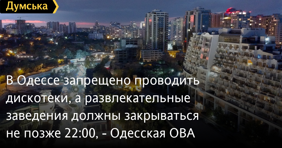 В Одессе запрещено проводить дискотеки, а развлекательные заведения должны закрываться не позже 22:00, — Одесская ОВАРазвлекательные заведения в Одессе должны закрываться не позднее, чем в 20:00 — 22:00. При этом запрещено проводить дискотеки, праздничные мероприятия, концерты и массовые мероприятия с большим скоплением людей. Об этом рассказал пресс-секретарь главы Одесской ОВА Сергей Братчук. Он отметил, что в последнее время в адрес Одесской ОВА поступает немало обращений по поводу функционирования прибрежных комплексов, предоставления услуг в сфере отдыха в условиях военного времени. Поэтому в администрации еще раз напомнили правила работы заведений. Там добавили, что продажа всех видов алкоголя разрешена с 09:00 до 18:00 и этот приказ распространяется в том числе на заведения сферы отдыха – на кафе и рестораны. Заметили ошибку? Выделяйте слова с ошибкой и нажимайте control-enter |