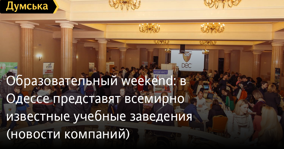 25 марта в одесском отеле Bristol (Пушкинская, 15) компания DEC education проведет Образовательный weekend, где будут представлены более 30 университетов, колледжей, частных школ и языковых центров.