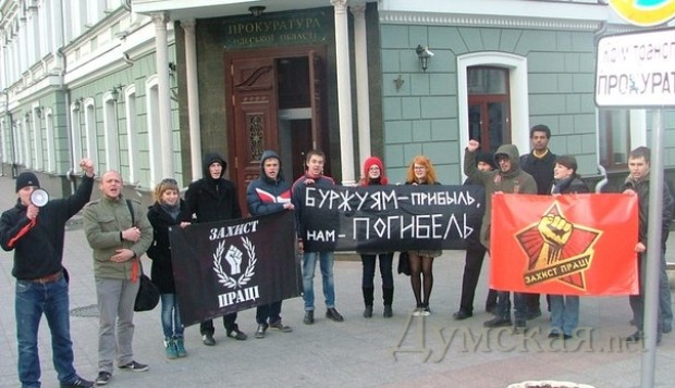 Активисты организации «Независимый профсоюз «Захист праці» 29 марта пикетировали здание прокуратуры Одесской области, выступая в поддержку работников Килийского судостроительного-судоремонтного завода, которым не выплачивают заработную плату.