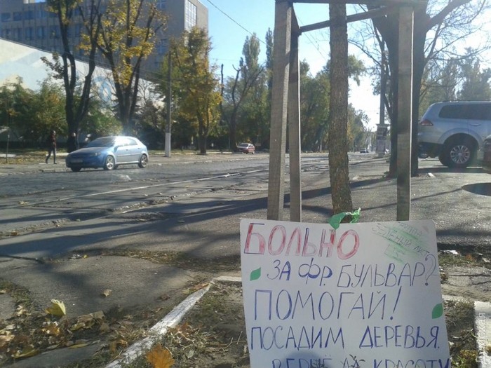 Вчера защитники Французского бульвара продолжили работу по подготовке к высадке новых деревьев вместо уничтоженных «Горзелентрестом».