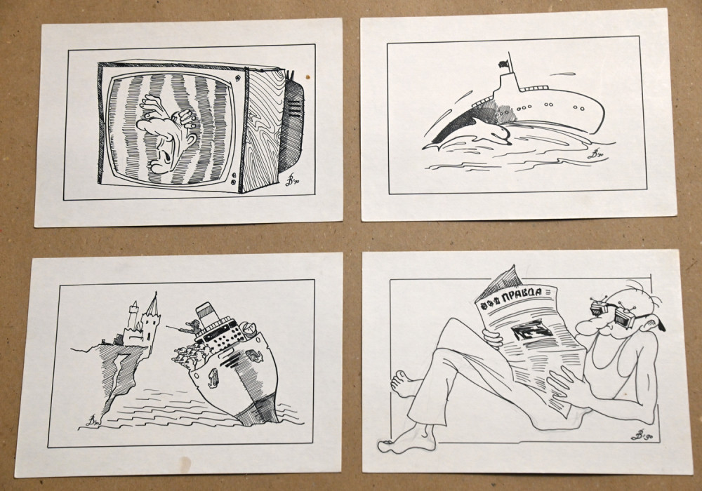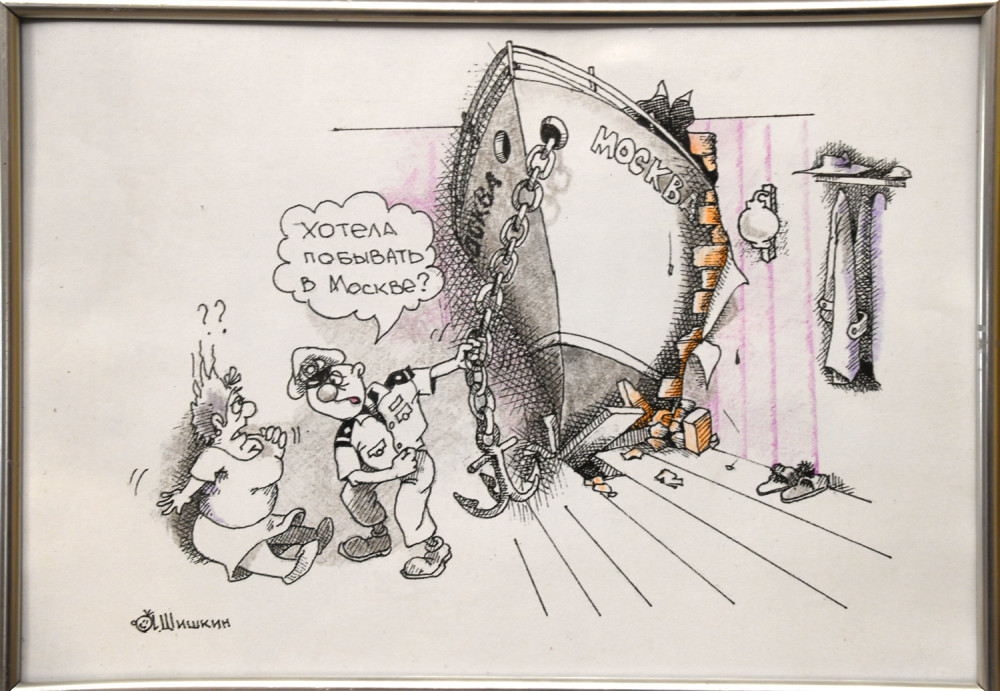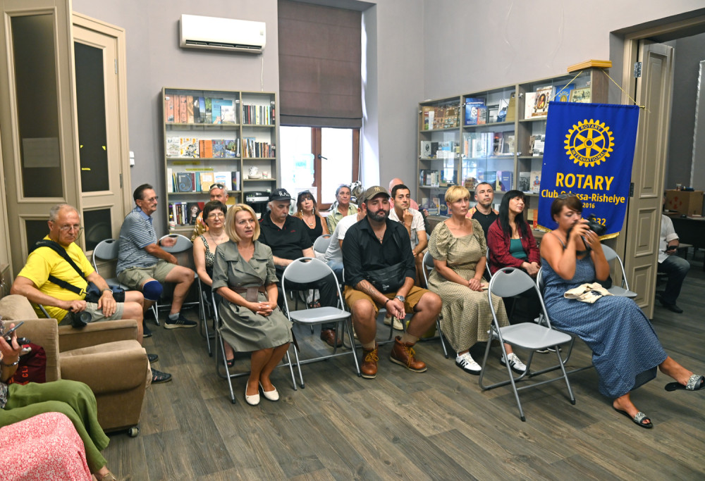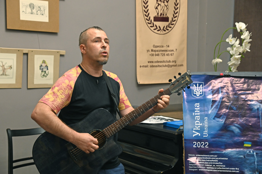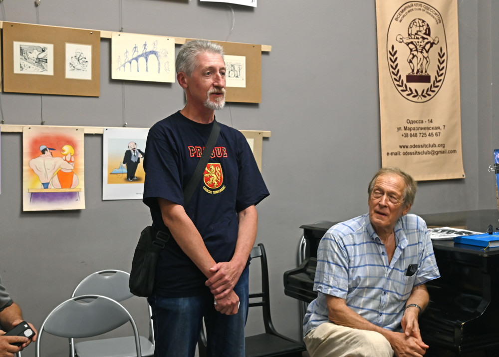 Творчий вечір, присвячений антивоєнній виставці карикатур «Російський військовий корабель, йди на ***», відбувся на Маразліївській вулиці Одеси.