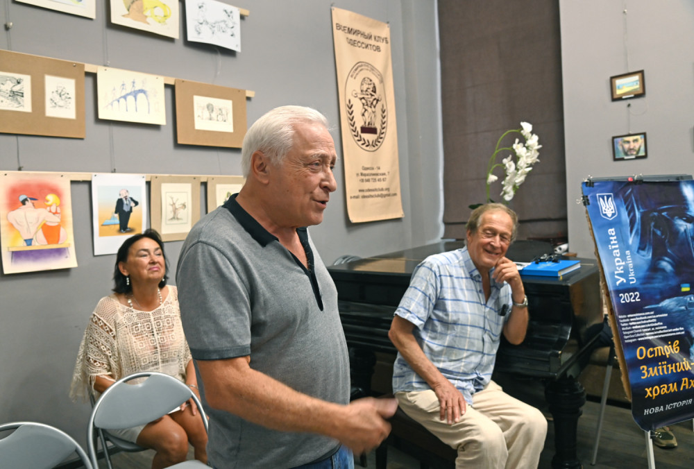 Про створення поштових марок «Асоль вже не та…» та «Нова історія Європи. Острів Зміїний – храм Ахілла» розповіли їхні автори – карикатурист Віктор Джевага та ілюстратор Володимир Ленський. За думкою Володимира, значення острова Зміїний у справжній та майбутній історії України важко переоцінити, тут не обходиться без втручання античних богів, що охороняють святилище Ахілла. А для марки ідеально підійшов найперший малюнок, створений на піку емоцій, шліфувати деталі вже не мало сенсу, так він і увійшов до історії.