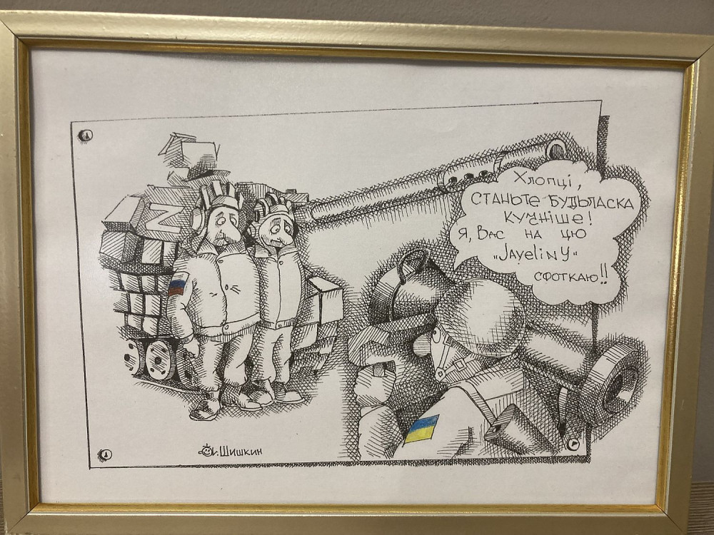За час реалізації проекту були придбані електрокардіографи, дефібрилятори, інші необхідні медичні прибори та ліки для прифронтового шпиталю в Миколаєві, організовані гуманітарні коридори з Рівного, Львову, словацького Кошице для доставки продовольчих товарів, ліків, інвалідних візків та інших життєво важливих речей для жителів Миколаєва. Менше з тим, карикатура – справа серйозна.