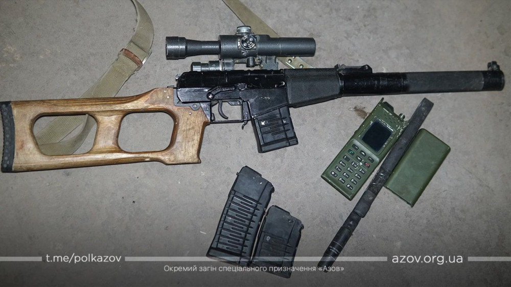 Как сообщают на телеграм-канале «Азов-Мариуполь», взятых трофеев — БСС «Винторез», радиостанция «Азарт» и другое.