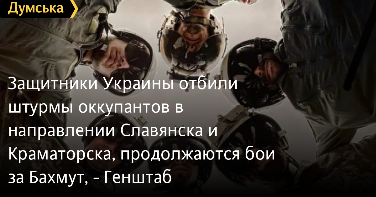 Захисники України відбили штурми окупантів в напрямку Слов'янська та Краматорська, тривають бої за Бахмут, — ГенштабТриває сто сорок сьома доба героїчного протистояння народу України військовій агресії рф. Найважчі бої зараз відбуваються в Донецькій, Луганській, Харківській та Херсонській областях. Генштаб Збройних сил опублікував зведення про ситуацію на фронтах. На слов’янському напрямку ворог здійснював вогневе ураження із танків, ствольної та реактивної артилерії у районах населених пунктів Долина, Богородичне, Костянтинівка, Гусарівка, Велика Комишуваха, Покровське та інших. Українські воїни знову успішно відбили штурмові дії ворога в районі Богородичного. На краматорському напрямку окупанти обстрілювали із артилерії райони Краматорська, Серебрянки, Верхньокам’янського та Івано-Дар’ївки. Завдали ракетно-авіаційних ударів поблизу Краматорська та Слов’янська. Штурмові дії в районах Григорівки та Спірного закінчились для ворога втратами та відступом. На бахмутському напрямку бойовими діями ворог намагається створити сприятливі умови для встановлення контролю над містом Бахмут та територією Вуглегірської ТЕС. Здійснював обстріли в районах населених пунктів Берестове, Веселе, Яковлівка, Соледар, Бахмутське, Весела Долина, Кодема, Майорськ, Нью-Йорк та інших. Завдав авіаційних ударів по Покровському. Веде штурмові дії у районі Берестового та на підступах до Вуглегірської ТЕС, бойові дії тривають. СМЕРТЬ РОСІЙСЬКИМ ОКУПАНТАМ! Помітили помилку? Виділяйте слова з помилкою та натискайте control-enter |