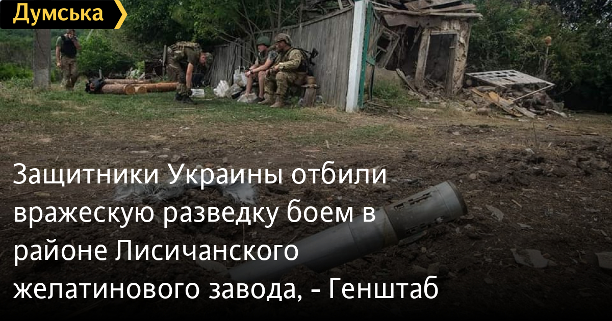 Попытку оккупантов провести разведку боем в районе Лисичанского желатинового завода украинские защитники успешно отразили. Враг отошел.