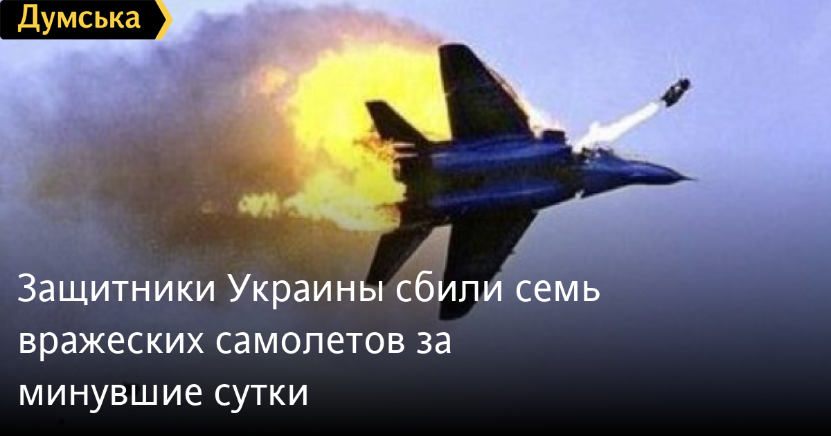 Как сообщает Командование Воздушных сил ВСУ, уничтожены семь самолетов, один вертолет, один беспилотник и две крылатые ракеты.