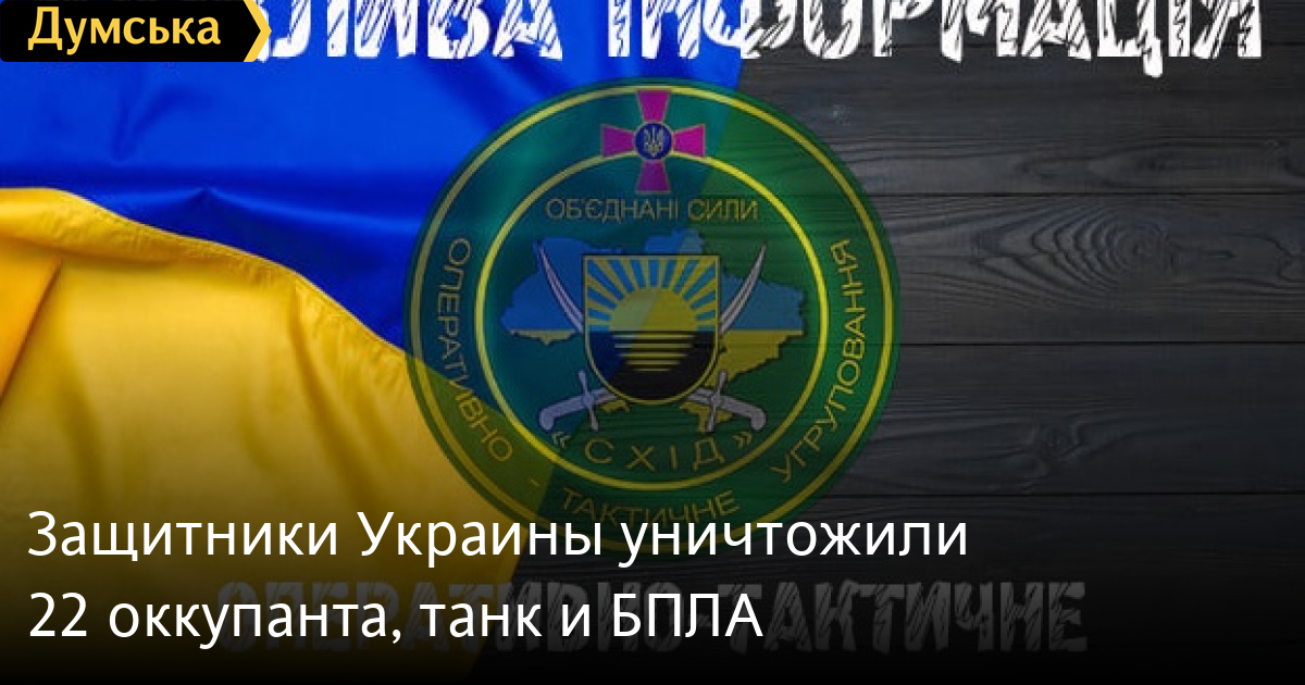 15 апреля украинские защитники в районе ответственности оперативно-тактической группировки «Восток» отразили вражескую атаку и уничтожили более двух десятков российских оккупантов, а также танк, БПЛА и артиллерийскую систему.