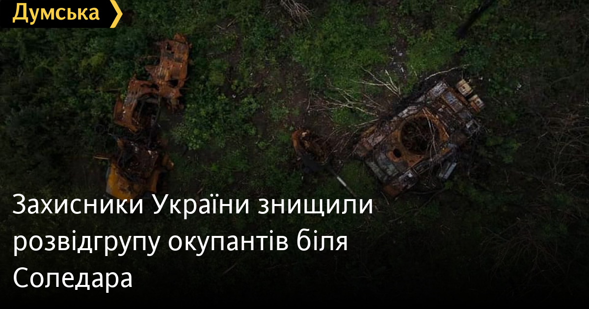 Захисники України знищили розвідгрупу окупантів біля СоледараТриває сто сімдесят друга доба героїчного спротиву українського народу російському воєнному вторгненню. Генштаб Збройних сил України опублікував вечірнє зведення щодо ситуації на фронтах. Захисники України завдали вогневого ураження та знешкодили розвідгрупу противника у напрямку Соледару. Окупанти вели наступальні бої в напрямках Яковлівки, Соледару, Вершини, Кодеми та Зайцевого, зазнали втрат та відійшли. В напрямку Бахмута підрозділи противника мали частковий успіх. На авдіївському напрямку противник вів штурмові дії у напрямках Красногорівки та Пісків, успіху не мав і відійшов. СМЕРТЬ РОСІЙСЬКИМ ОКУПАНТАМ! Помітили помилку? Виділяйте слова з помилкою та натискайте control-enter |