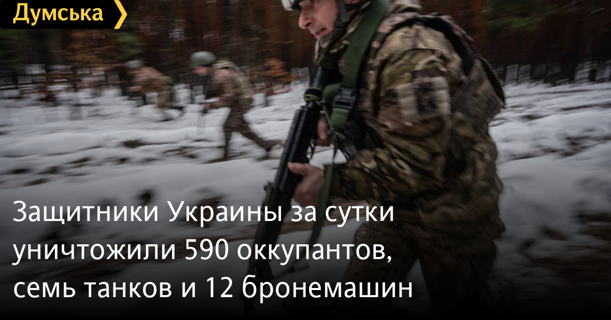Захисники України за добу знищили 590 окупантів, сім танків і 12 бронемашин590 російських солдатів і офіцерів поповнили список втрат ворожої армії в Україні 18 лютого. Від початку повномасштабного вторгнення рф втратила вже 142 тисячі 860 військовослужбовців. У Генеральному штабі Збройних сил України повідомили, що вчора нашим військам також вдалося підбити сім танків (3310 за весь час) і 12 бойових броньованих машин (6545) противника. Також було знищено одну артилерійську установку ворога (2327) та одну одиницю спецтехніки (224). Вранці 18 лютого українська ППО збила дві ворожі крилаті ракети (224). СМЕРТЬ РОСІЙСЬКИМ ОКУПАНТАМ! Помітили помилку? Виділяйте слова з помилкою та натискайте control-enter |