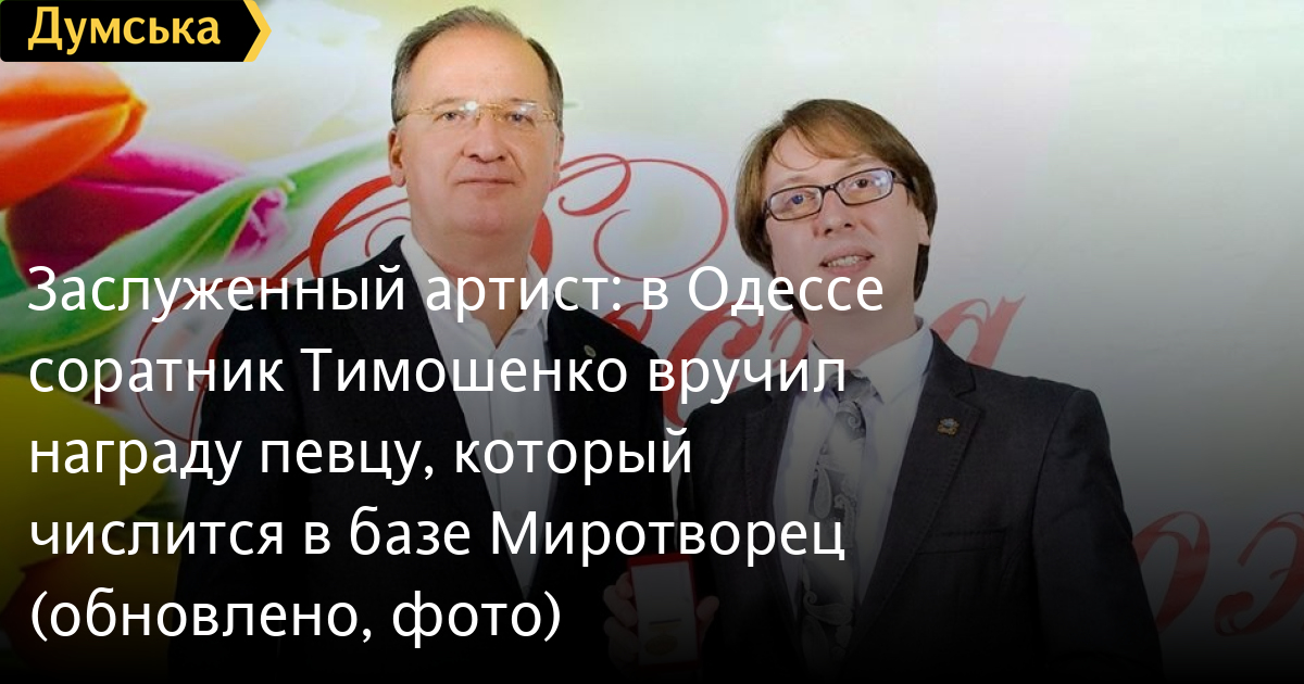 Заместитель председателя областного совета и член партии «Батьківщина» Олег Радковский вручил жителю Черноморска Максиму Скоблинскому награду «Заслуженный артист эстрадного искусства Украины».