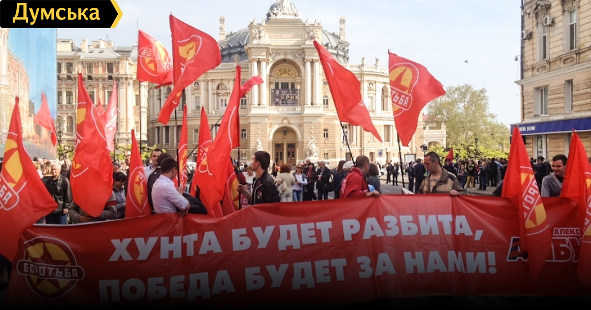Одесские любители России проводят первомайскую демонстрацию. Шествие стартовало от Оперного театра. В нем участвует примерно 1-2 тысячи человек. Впереди идут активисты «Боротьбы» и коммунисты. В колонне замечены представители курдской общины. Метрах в ста от пророссийских сил идут анархисты. Они кричат: «Гурвиц здесь не пройдет!»
