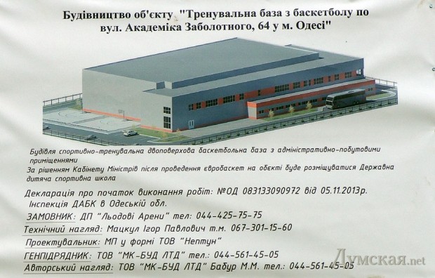 ГАСК зарегистрировал декларацию о начале строительства тренировочной базы по баскетболу к чемпионату Европы 2015-го, а горсовет намерен освободить заказчика работ — госпредприятие «Ледовые арены» — от уплаты налога на землю. Базу, как мы уже писали, возведут на окруженном высотками пустыре, который лежит посреди квартала, ограниченного улицами Сахарова, Высоцкого, Заболотного и Днепропетровской дорогой. При Гурвице здесь планировали разбить парк, потом, когда в здании на Думской.Da воцарился Костусев, мэрия поддержала инициативу нардепа Труханова, решившего, что на пустыре должно появиться футбольное поле. Когда же стало известно. что в Одессе пройдут матчи Евробаскета, городская власть отдала территорию «Ледовым аренам».
