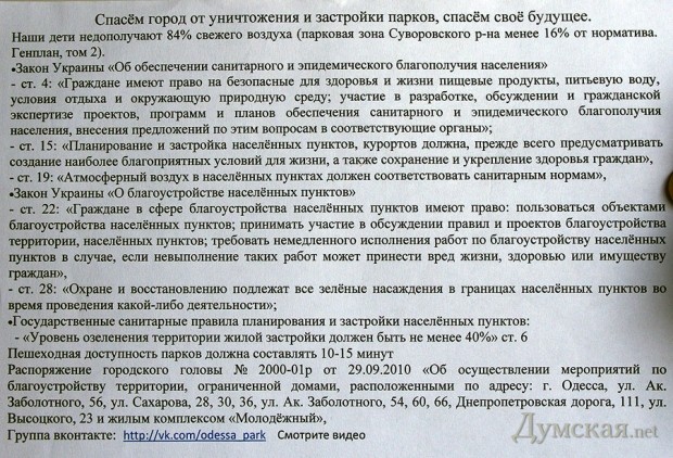 Тут наша история делает новый поворот. Виной ли тому политический кризис в Одессе, киевские события, или же общие проблемы с одесским «Евробаскетом-2015», однако с ноября стройка опустела. Рабочие ушли, бросив и бытовки, и сам забор, который они столько времени обороняли от регулярных нападений малолетних аборигенов (шутка ли, у местной сборной по дворовому футболу отобрали единственные ворота на районе!). Ну а местные жители снова остались ни с чем: за окном – дождливый одесский январь, под окном – пустырь с дырявым забором, а в душе — тоска. И все те же 15,96% от нормального количества зеленых насаждений.