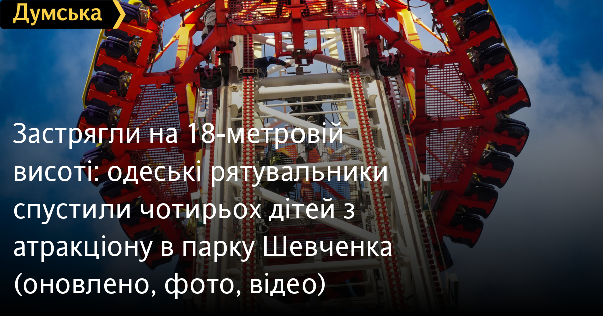 Як страховку використовували мотузку. Підлітки провели на висоті близько пів години. Зараз із дітьми працюють психологи ДСНС. На щастя, ніхто не постраждав. Зазначимо, що це не перший скандал, пов'язаний із вимкненням світла, у який потрапляє цей парк атракціонів. Під час перших блекаутів 2022-го він сяяв, як новорічна ялинка, посеред темного міста. Чим викликав безліч нарікань одеситів. Тоді була підозра, що атракціони живляться безпосередньо від підстанції «Маразліївська», розташованої тут же в парку Шевченка. При цьому навколишні квартали залишалися неосвітленими. Однак керівництво запевнило, що розважальний комплекс живили від потужних бензинових генераторів, які розташовані поблизу в контейнерах. Куди поділися ці генератори, поки що невідомо. ОНОВЛЕНО О 20:00. Як заявив «Думській» співвласник атракціонів Геннадій Переверзєв, генератори на місці і працюють. «При стрибку напруги спрацювала аварійна зупинка. До приїзду ДСНС люди були зняті мною особисто і моїми двома працівниками. Усе добре, ніхто не постраждав. З хлопцями та батьками провели бесіду, після чого всі розійшлися», — запевнив Переверзєв.