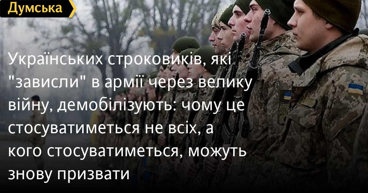 Водночас, за даними «Думської», реально демобілізують зовсім невеликий відсоток людей, яких призвали до початку великої війни. Річ у тім, що за минулі майже два роки більшість строковиків уже підписали контракти і захищають Україну разом з іншими категоріями військових.