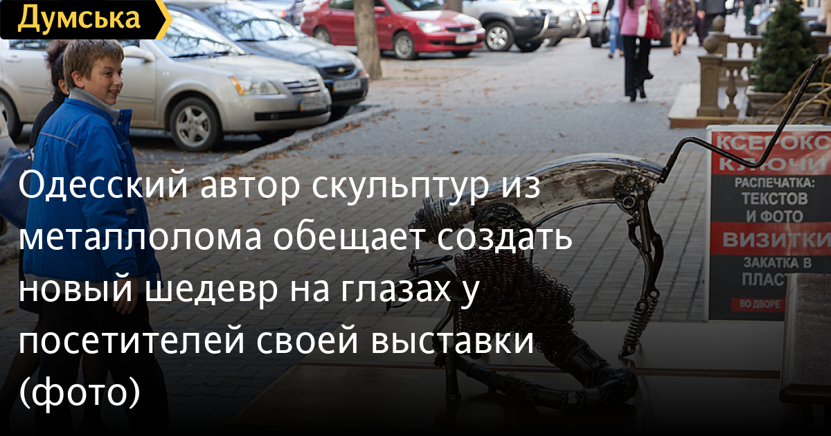 Одесский автор скульптур из металлолома обещает создать новый шедевр на глазах у посетителей своей выставкиВыставка авторских работ одесского скульптора Кирилла Максименко, автора памятника «Рука Стива Джобса», откроется завтра в помещении паба на улице Жуковского, 23. Как рассказал «Думской» сам автор, в экспозиции будут представлены практически все его малогабаритные работы — как уже известные одесситам, так и совершенно новые. Их будет три десятка. Кроме того скульптор-сварщик, обещает в конце вечера создать новую работу прямо на глазах у гостей мероприятия. СМЕРТЬ РОСІЙСЬКИМ ОКУПАНТАМ! Помітили помилку? Виділяйте слова з помилкою та натискайте control-enter |