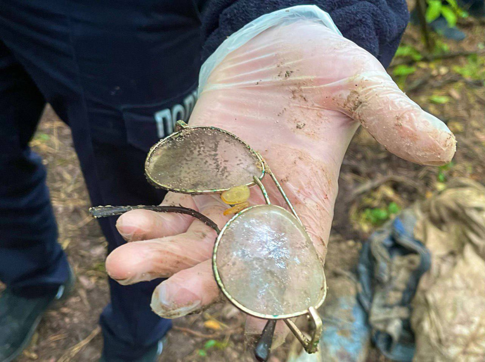 «В одній з ям, поруч із бліндажами солдатів рф, знаходилося тіло чоловіка зі зв'язаними руками, з натягнутою на обличчя шапкою і зав'язаним на шиї скотчем. У кишені загиблого знайшли окуляри для зору. Другий вбитий був одягнений у флісову кофту кольору хакі з шевронами академії СБУ. У чоловіка на безіменному пальці була золота каблучка», — розповів голова поліції Київської області.