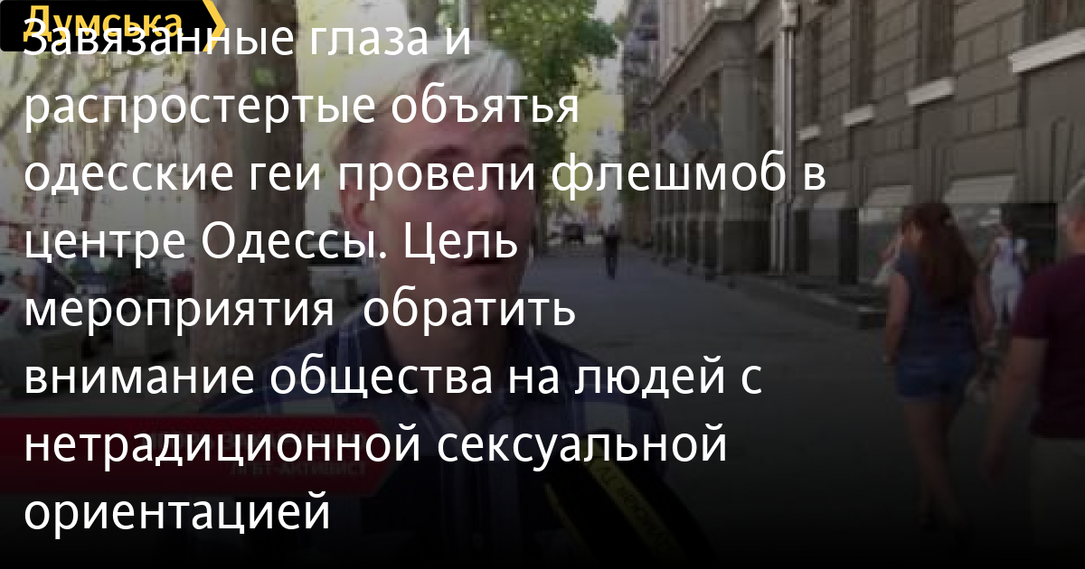 Завязанные глаза и распростертые объятья – одесские геи провели флешмоб в центре Одессы. Цель мероприятия – обратить внимание общества на людей с нетрадиционной сексуальной ориентацией