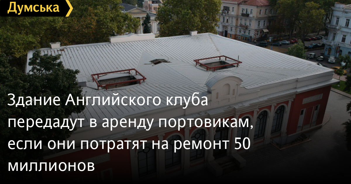 Отметим, что область и город много лет судились за здание Английского клуба. Победила первая. Сейчас объект находится в коммунальной собственности громад региона. Обязанности по его защите лежат на облгосадминистрации.
