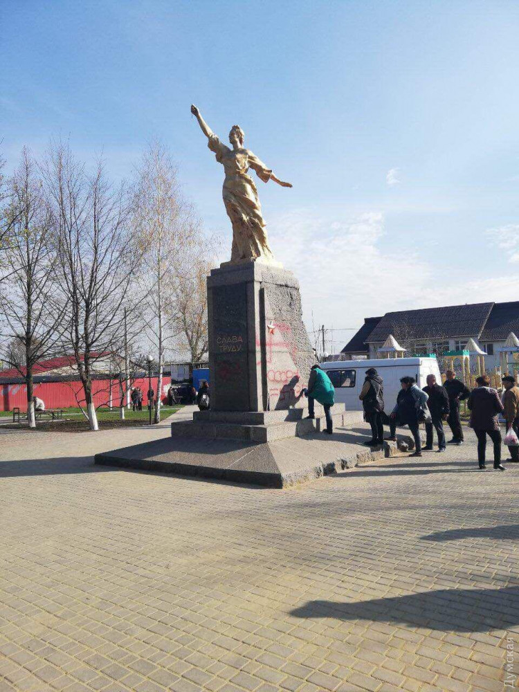 Сейчас полиция разыскивает хулиганов, а коммунальщики отмывают памятник. Отметим, что ранее памятник подвергся «декоммунизационной» модификации: фигуру женщины лишили серпа и молота, которые она держала в правой руке, вознося к небу.