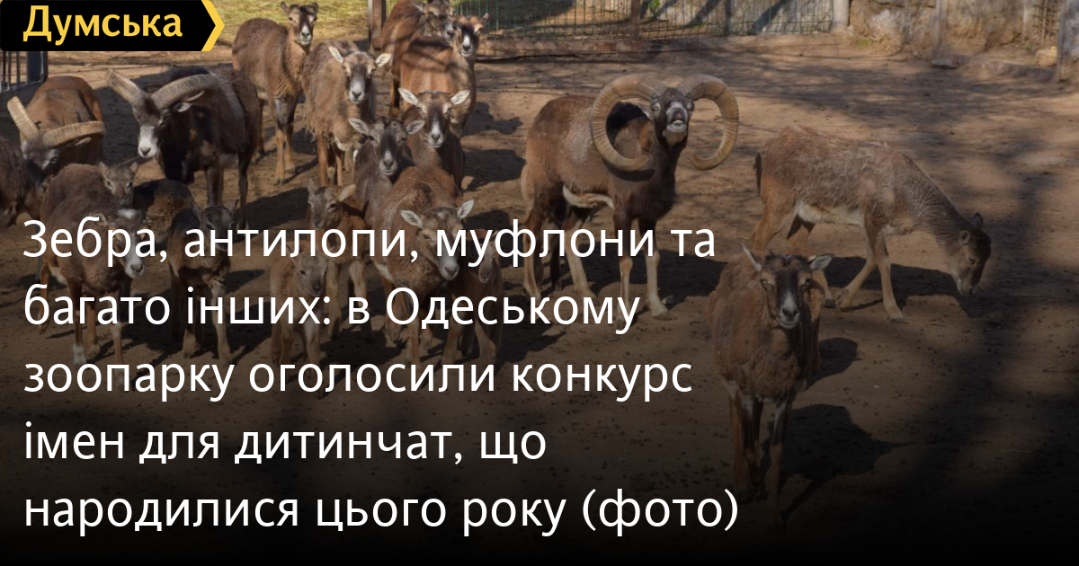 Зебра, антилопи, муфлони та багато інших: в Одеському зоопарку оголосили конкурс імен для дитинчат, що народилися цього рокуОдеський зоопарк оголосив традиційний конкурс «Дай ім'я малюкові – 2022» і пропонує відвідувачам звіринця назвати звірят, що недавно народилися. Імена можна до 21 жовтня пропонувати у коментарях під фотографіями учасників конкурсу на сторінці зоопарку у фейсбуці. Серед конкурсантів: біла лань (дівчинка), четверо більчат (два хлопчики та дві дівчинки), зебра (хлопчик), зебу (дівчинка), кінь Пржевальського (дівчинка), лами (дві дівчинки та один хлопчик), лані європейські (дві дівчинки, два хлопчики), муфлони (шість хлопчиків, одна дівчинка), антилопи Нільгау (три хлопчики, одна дівчинка), угорська худоба (хлопчик і дівчинка), чорний лебідь (хлопчик) та тхори (два хлопчики, дві дівчинки). Урочиста церемонія надання імен відбудеться 22 жовтня на святі «День малюків» у зоопарку. Авторам імен-переможців вручать пам'ятні призи. Помітили помилку? Виділяйте слова з помилкою та натискайте control-enter Новини по цій темі: 15 травня 2025: В одеському зоопарку сервала рятували від левів: довелося використати транквілізатор, усі живі 🦁🐈 (відео, хеппі-енд) 21 грудня 2024: Убивство леопарда в одеському зоопарку: зоозахисники знайшли нестиковки у фактах і вимагають розслідування |