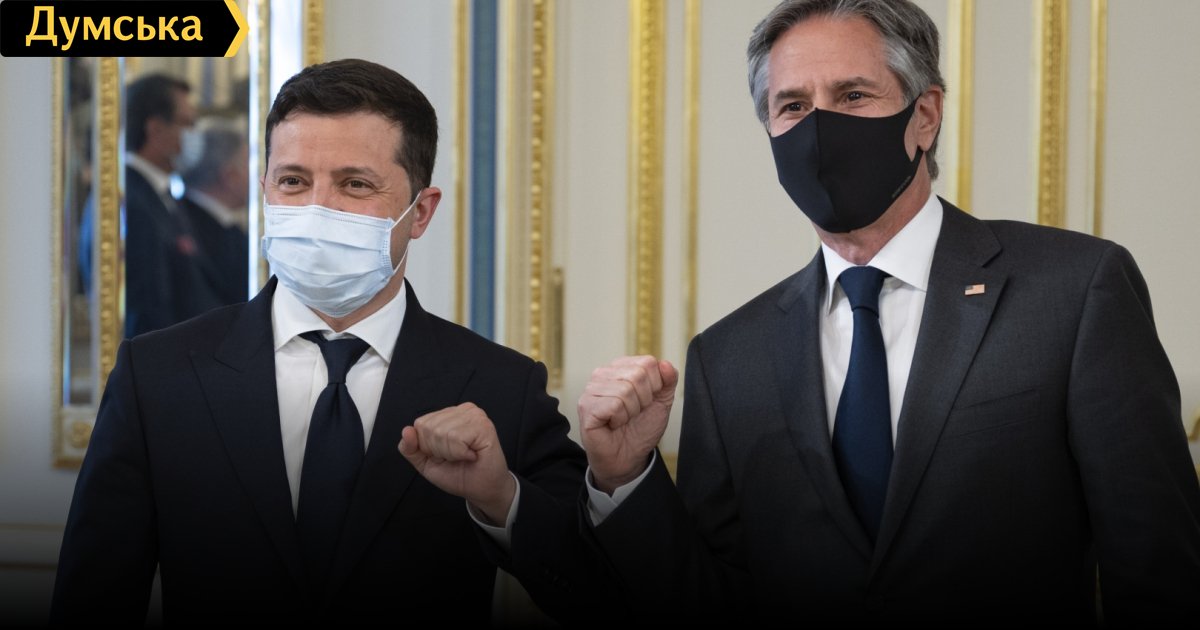 Президент Украины Владимир Зеленский и госсекретарь США Энтони Блинкен провели телефонный разговор вечером 6 декабря. Об этом Зеленский сообщил в Twitter. «Согласовали позиции с Блинкеном перед разговором президентов Байдена и Путина», — написал Зеленский. Он отметил, что во время беседы с американской стороной была достигнута договоренность и дальше действовать совместно и скоординированно. Зеленский поблагодарил госсекретаря за поддержку Украины. «Ничего об Украине без Украины», — подчеркнул Зеленский. В свою очередь глава МИД Украины Дмитрий Кулеба заявил, что Украина не ожидает прорыва после разговора американского и российского лидеров. «Я бы не ожидал завтра каких-нибудь прорывов. Думаю, завтра каждая сторона заявит свое максималистское видение и логику дальнейших действий. А потом будут работать разные команды над тем, как будет развиваться ситуация», — пояснил министр. По его мнению, Владимир Путин услышит в разговоре четкие сигналы от Байдена о том, что сделают партнеры Украины в случае, если президент РФ прибегнет к военной операции против Украины. Напомним, разговор Владимира Путина и Джо Байдена состоится вечером 7 декабря. СМЕРТЬ РОСІЙСЬКИМ ОКУПАНТАМ! Помітили помилку? Виділяйте слова з помилкою та натискайте control-enter
