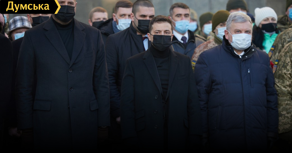 Президент Владимир Зеленский принял участие в церемонии памяти украинских военнослужащих, погибших при обороне Донецкого аэропорта. Как сообщили в пресс-службе Офиса президента, на церемонии, которая состоялась у Министерства обороны, объявили фамилии защитников Украины, погибших 20 января 2015 года. После озвучивания каждой фамилии воины роты почетного караула били в колокол и салютовали из стрелкового оружия. «Украинские воины на фронте ежедневно доказывают, что ни вооруженные провокации противника, ни лютые морозы не заставят их отступить со своей земли. Каждый день мы благодарим их за мирное небо над нашими городами и селами и вспоминаем имена тех, кто погиб, защищая суверенитет и территориальную целостность Украины. Должны сделать все, чтобы количество имен, которые звучат возле Памятного колокола, не увеличивалась, а в Украине наконец воцарился мир», — заявил Зеленский. Отметим, 20 января 2015 года во время обороны Донецкого аэропорта зафиксированы наибольшие потери среди украинских защитников. В целом количество погибших военнослужащих ВСУ по обороне Донецкого аэропорта с сентября 2014 года до января 2015 составляет 109 человек, раненых — 446, без вести пропавших — 6. СМЕРТЬ РОСІЙСЬКИМ ОКУПАНТАМ! Помітили помилку? Виділяйте слова з помилкою та натискайте control-enter