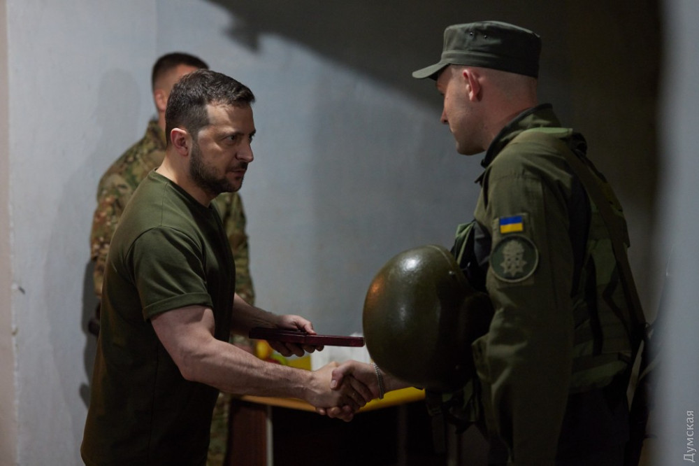 «Хочу поблагодарить вас от народа Украины, нашего государства за ту большую работу, которую вы делаете, за вашу героическую безупречную службу. Важно, что вы живы. Пока вы живы, есть крепкая украинская стена, защищающая нашу страну. Желаю вашим семьям здоровья», – сказал Владимир Зеленский.