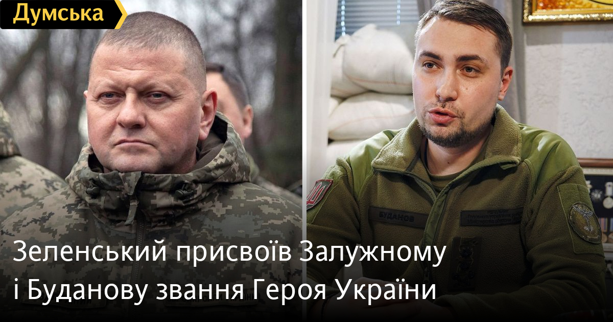 Зеленський присвоїв Залужному і Буданову звання Героя УкраїниЗвання Героя України присвоїв генералу Валерію Залужному та керівнику Головного управління розвідки Міністерства оборони Кирилу Буданову президент Володимир Зеленський. Відповідні укази голова держави підписав 8 лютого. Залужний отримав звання та орден «Золота Зірка» за визначні особисті заслуги в захисті державного суверенітету та територіальної цілісності України, самовіддане служіння українському народові. Буданову присвоїли звання й аналогічний орден за особисту мужність і героїзм, виявлені в захисті державного суверенітету та територіальної цілісності України, самовіддане служіння українському народові. Нагадаємо, 8 лютого Зеленський відправив Залужного у відставку з посади головнокомандувача Збройних сил України, а замість нього призначив генерал-полковника Олександра Сирського. Помітили помилку? Виділяйте слова з помилкою та натискайте control-enter