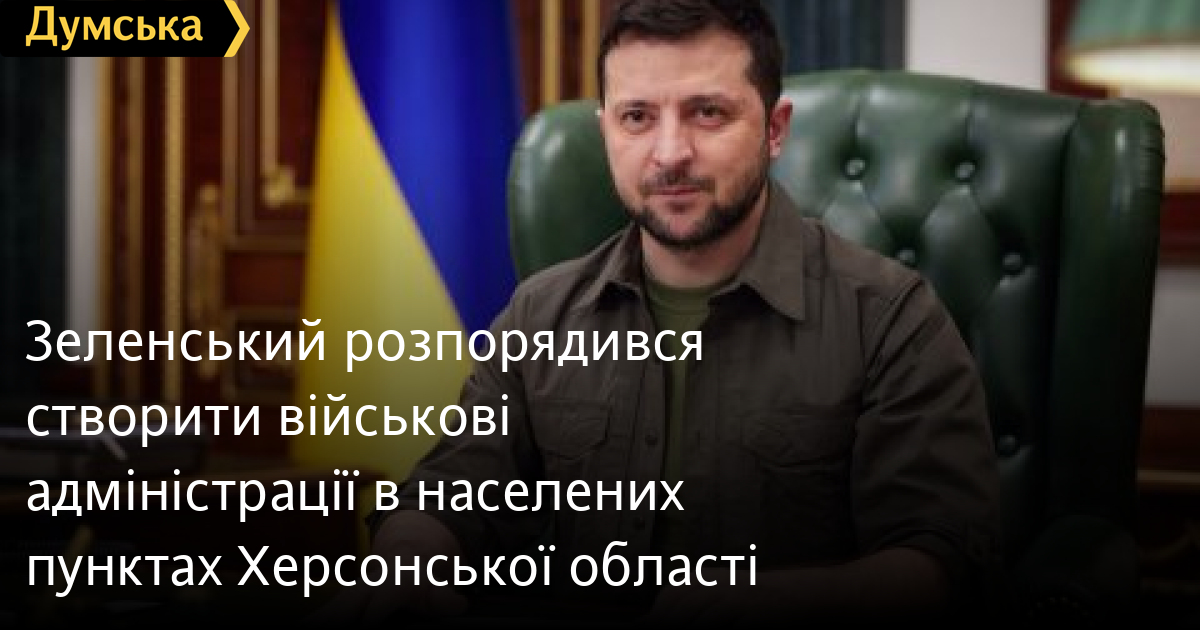 Військові адміністрації буде створено в кількох населених пунктах тимчасово окупованої Херсонської області.