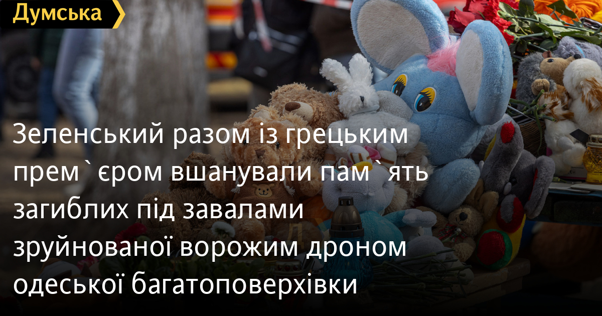Зеленський разом із грецьким прем`єром вшанували пам`ять загиблих під завалами зруйнованої ворожим дроном одеської багатоповерхівкиПам'ять загиблих під завалами одеської дев'ятиповерхівки в ніч на 2 березня вшанували президент України та грецький прем'єр-міністр. Володимир Зеленський і Кіріакос Міцотакіс побували біля будинку №134 на проспекті Добровольського під час спільного візиту до Одеси 6 березня, повідомила пресслужба голови держави. На місці прильоту ворожого дрона президент України зустрівся з місцевими жителями. «Поспілкувався з мешканцями пошкодженої дев'ятиповерхівки та сусідніх будинків. Важливо забезпечити всім необхідним людей, які втратили житло. Із цим обов'язково допоможуть. Усі отримають компенсації за знищене житло», — зазначив Зеленський. Нагадаємо, внаслідок влучання російського дрона в дев'ятиповерхівку на проспекті Добровольського загинули 12 людей, серед яких п'ятеро дітей віком від чотирьох місяців до дев'яти років. Ще 20 осіб дістали поранення. СМЕРТЬ РОСІЙСЬКИМ ОКУПАНТАМ! Помітили помилку? Виділяйте слова з помилкою та натискайте control-enter |