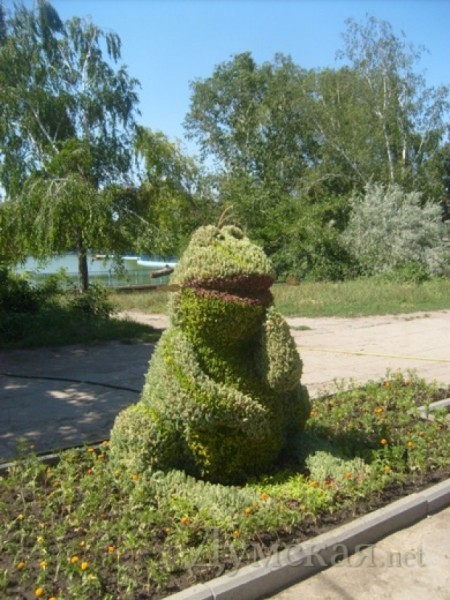 На этот раз коммунальщики установили в парке Победы композицию под названием «Царевна-лягушка». По словам директора КП Александра Риффы, на изготовление фигуры понадобилось около 2300 цветов (седума и тагетис).