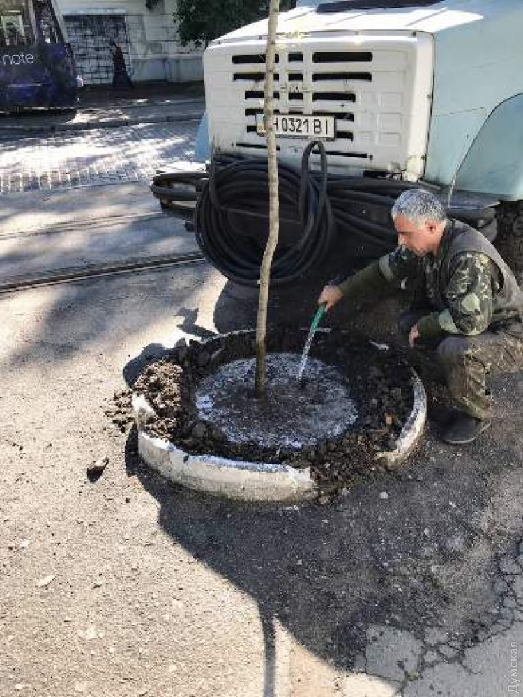 Кроме того, сотрудниками предприятия проводится ежедневная работа по поливу молодых деревьев, которые высаживались по всему городу. Только за вчерашний день были политы 250 деревьев по Французскому бульвару и еще 7 деревьев по ул. Успенской. Неравнодушные одесситы могут присоединиться к данной инициативе и принять участие в поливе молодых саженцев, говорят в «Горзелентресте».