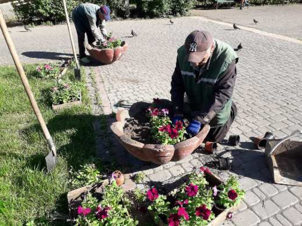Также озеленители украшают цветами Думскую и Театральную площади.