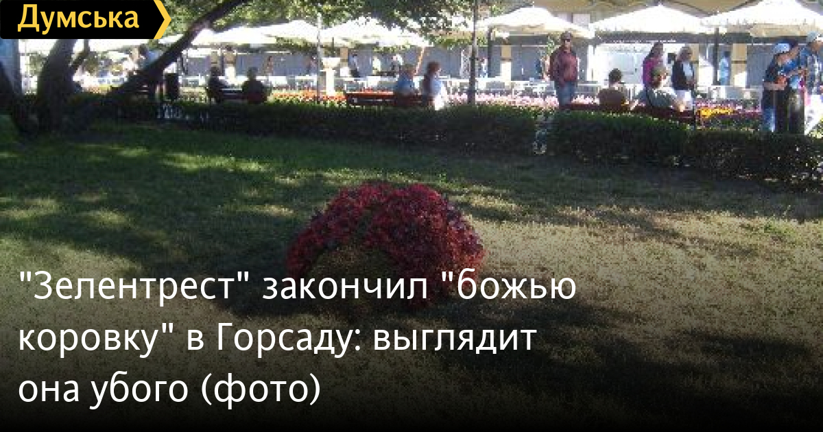 Как передает ваш корреспондент, выглядит цветочный жучок довольно убого. На настоящую божью коровку фигура совсем не похожа, кроме того, впечатление портит пожухлый из-за отсутствия нормального полива и слишком короткой стрижки газон (если это можно назвать газоном). Увы, приличных садоводов в «Зелентресте» давно уже не осталось. Словом, классическое УГ.