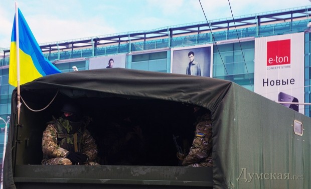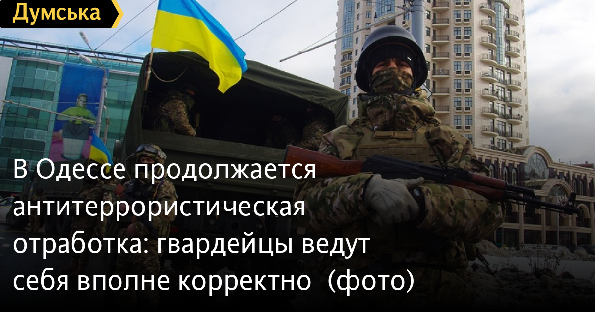 В Одессе продолжается оперативно-профилактическая антитеррористическая отработка. Национальные гвардейцы (солдаты бывших Внутренних войск МВД) совместно с милицией, бойцами спецбатальона и другими подразделениями патрулируют город, останавливая подозрительных лиц и транспортные средства.