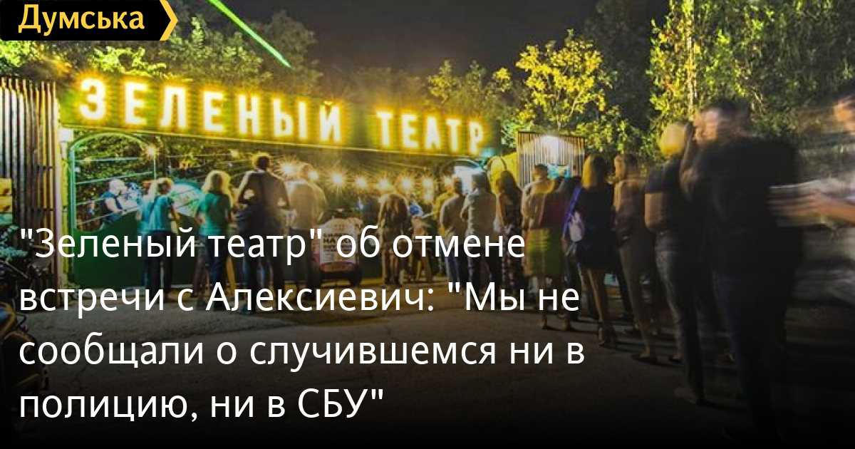 «Зеленый театр» не обращался ни в полицию, ни в СБУ по поводу угроз, якобы поступивших в адрес лауреата Нобелевской премии по литературе Светланы Алексиевич, встречу с которой организация отменила сегодня буквально в последний момент.