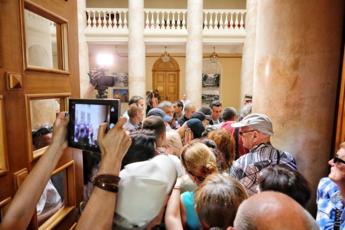 Оба лагеря оказались настроены весьма решительно. Инвесторы пытались помешать своим оппонентам попасть на заседание комиссии, из-за этого перед входом в мэрию и в фойе произошла потасовка. Именно тогда один из инвесторов напал на фотокорреспондента «Думской».