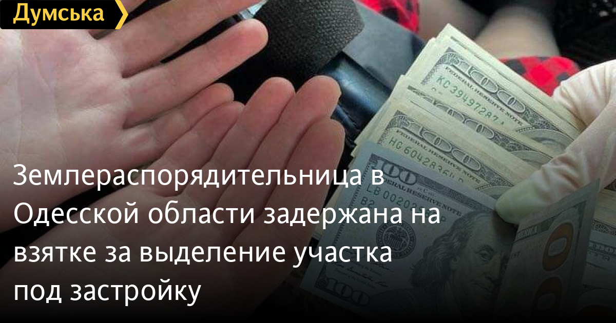 Землераспорядительница в Одесской области задержана на взятке за выделение участка под застройку